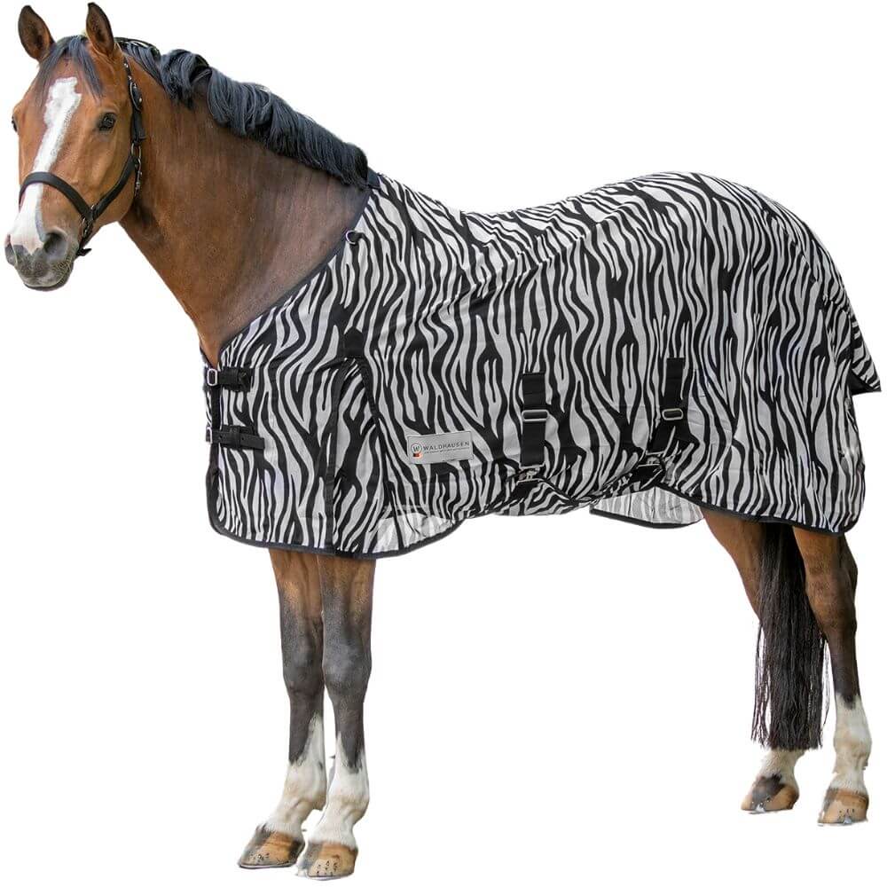 Entdecken Sie die Waldhausen Fliegendecke Zebra – den ultimativen Schutz für Ihr Pferd gegen lästige Insekten! Diese hochwertige Fliegendecke besteht aus feinstem, feinmaschigem Gewebe und bietet Ihrem Pferd durch den speziellen schwarz-weißen Zebra-Effekt einen besonders effektiven Schutz. Der einzigartige Farbton wirkt abweisend auf Insekten, was die Fliegendecke Zebra deutlich wirkungsvoller macht als herkömmliche Modelle.